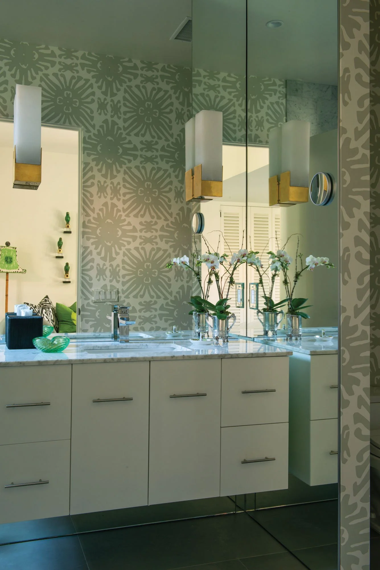 Together, mother and daughter worked to create an aesthetic that felt modern and fresh but also respected the home’s Hollywood Regency history. “We both really wanted it to embody the spirit of Marrakesh,” says Shaw. While their design tendencies are slightly different—Shaw skews more modern traditional while Furniss has a penchant for bold and daring—the duo easily locked arms, working virtually to pull together a look that seamlessly married both aesthetics. “My mom is a total maximalist,” says Shaw. “It’s really colorful and there’s a lot of texture, color, and pattern, and that’s how she loves to live.”